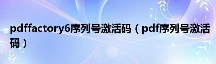 关于pdffactory6序列号激活码,pdf序列号激活码这个很多人还不知道,今天菲菲来为大家解答以上的问题,现在让我们一起来看看吧!