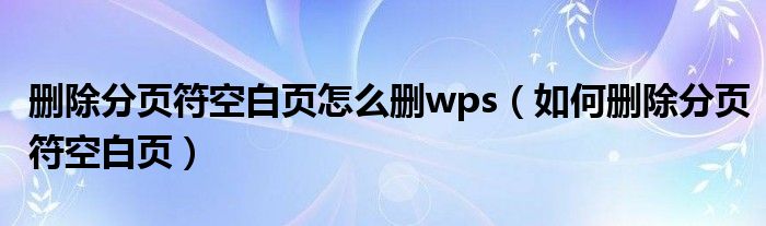 关于删除分页符空白页怎么删wps,如何删除分页符空白页这个很多人还不知道,今天菲菲来为大家解答以上的问题,现在让我们一起来看看吧!