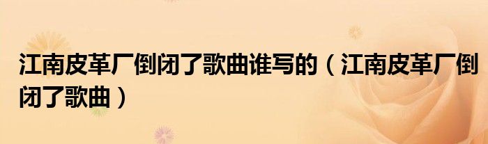 关于江南皮革厂倒闭了歌曲谁写的,江南皮革厂倒闭了歌曲这个很多人还不知道,今天菲菲来为大家解答以上的问题,现在让我们一起来看看吧!