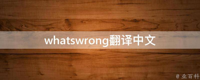 whatswrong翻译中文为怎么了,例句:Whats wrong with this one?翻是指的这两种语言的转换,即先把一句甲语转换为一句乙语,然后再把一句乙语转换为甲语;译是指这两种语言转换的过程,把甲语转换成乙语,在译成当地语言文字的过程中,进而明白乙语的含义。