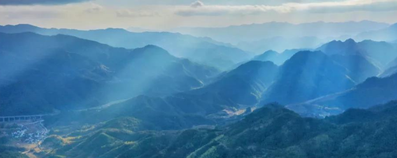3、青山绵延千里像被一条绿色的被子披盖着,犹如仙境。