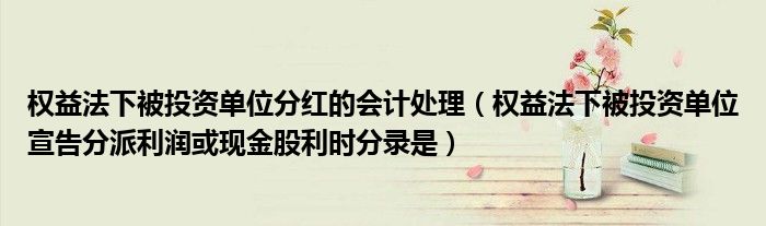 关于权益法下被投资单位分红的会计处理,权益法下被投资单位宣告分派利润或现金股利时分录是这个很多人还不知道,今天菲菲来为大家解答以上的问题,现在让我们一起来看看吧!