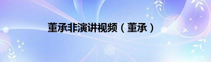 关于董承非演讲视频,董承这个很多人还不知道,今天菲菲来为大家解答以上的问题,现在让我们一起来看看吧!