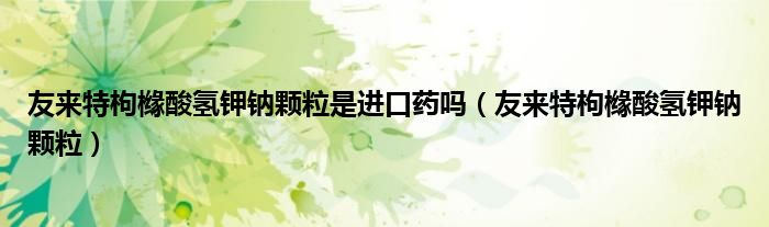 关于友来特枸橼酸氢钾钠颗粒是进口药吗,友来特枸橼酸氢钾钠颗粒这个很多人还不知道,今天菲菲来为大家解答以上的问题,现在让我们一起来看看吧!