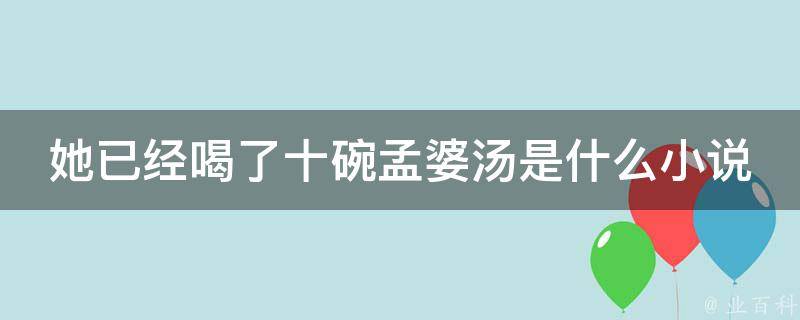 她已经喝了十碗孟婆汤是小说《娘亲要抱抱》。喝了10碗孟婆汤的小说女主是顾昭昭,作者是安容容,属于幻想类言情小说。相传有一条路叫黄泉路,有一条河叫忘川河,上有一座桥叫奈何桥。走过奈何桥有一个土台叫望乡台,望乡台边有个名曰孟婆的老妇人在卖孟婆汤,孟婆汤让你忘了一切。