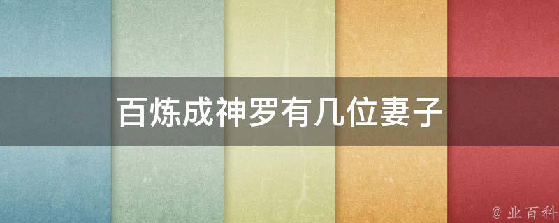 最佳答案百炼成神罗有8个妻子,分别是宁雨蝶、溪幼琴、熏、苏灵韵、含流苏、牧凝、凌霜、凤歌。《百炼成神》是恩赐解脱所著的一部玄幻大作,于在2014年开始连载在安卓读书。2017年百炼成神音频版上线蜻蜓FM。