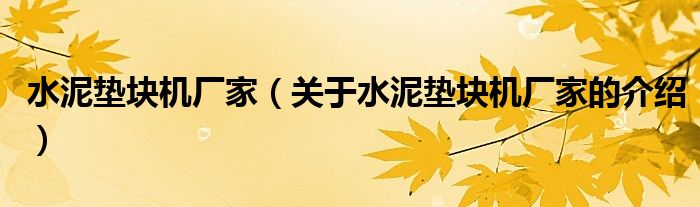 水泥垫块机厂家(关于水泥垫块机厂家的介绍)