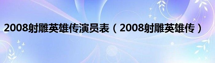 大家好,我是小科,我来为大家解答以上问题。2008射雕英雄传演员表,2008射雕英雄传很多人还不知道,现在让我们一起来看看吧!