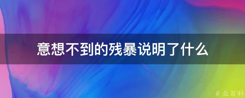 意想不到的残暴说明了追求民主自由过程的复杂性。中国历史上革命后的动荡反复和专制交替,社会各阶层无法压抑的怒火和意想不到的残暴斗争,也昭示了追求民主自由过程的复杂性。它与人类的进化历史和社会环境有关,见证了人类的发展。
