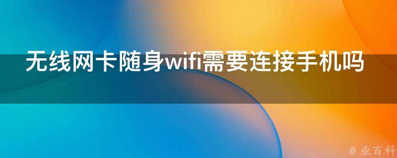 无线网卡随身WiFi需要连接手机。无线网卡随身WiFi可看作是移动随身WiFi,需要插入到手机或其他移动设备中,然后通过该设备提供无线网络连接。无线网卡随身WiFi是内置电池供电,能够满足出差移动办公的商务及旅游人士对网络依赖的需求。