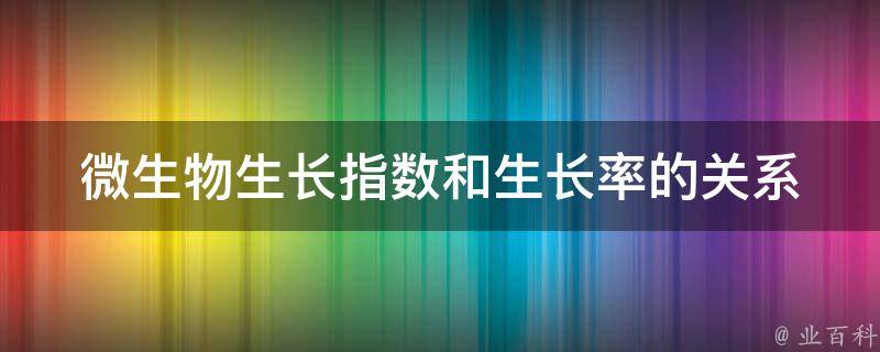 最佳答案微生物的生长指数和生长率之间存在密切的关系。微生物的生长指数通常是指细胞在特定时间段内的数量或生物量的增加。而微生物的生长率则是指在特定时间段内,细胞数量或生物量增加的速率。如果细胞在一段时间内数量增加得更快,那么它们的生长指数就会更高,同时生长率也会更大。