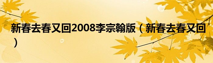 大家好,我是小科,我来为大家解答以上问题。新春去春又回2008李宗翰版,新春去春又回很多人还不知道,现在让我们一起来看看吧!
