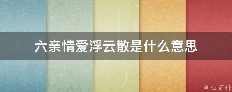 六亲情爱浮云散的意思是六亲之间的亲情和爱就像浮云一样消散。这句话可能表达的是一种对于亲人关系的破裂或者亲人的离世而感到痛苦和失落的心情。同时,也可能是在暗示亲人之间的关系不够稳固,或者自己对于亲人的感情不够深厚。