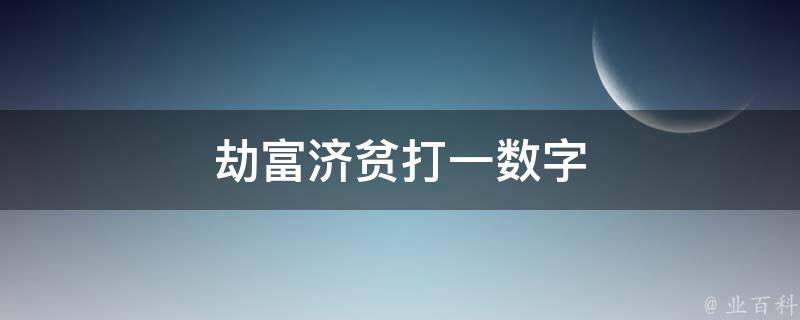 劫富济贫打一数字是36,可以从劫富济贫的笔画入手去猜数字。劫字7笔画、富字12笔画、济字9笔画、贫字8笔画,4个字一共是7+12+9+8=36笔。因此劫富济贫打一数字是36。劫富济贫意思是夺取富人的财产,救济穷人。出自清曾朴《孽海花》第三十五回:老汉平生最喜欢劫富济贫,抑强扶弱,打抱不平。