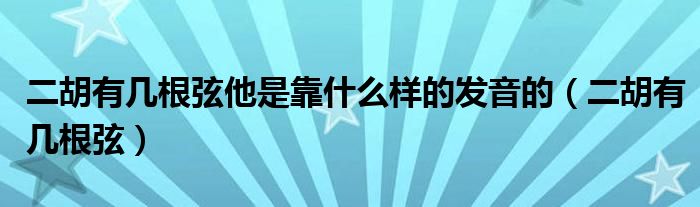 二胡有几根弦他是靠什么样的发音的(二胡有几根弦)