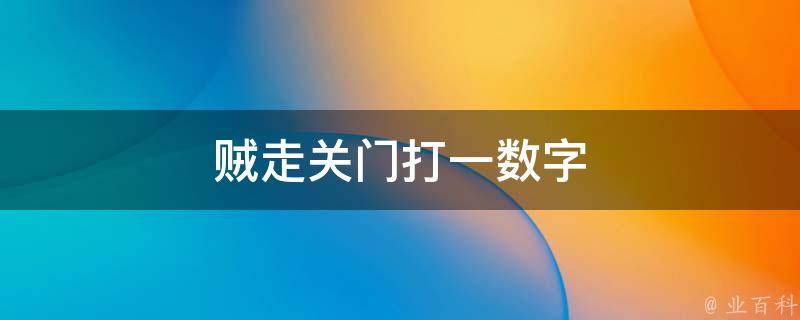 贼走关门指的是生肖鼠,而鼠在十二生肖中排名第一,所以答案是1。贼走关门的意思是事故发生后才采取措施。在十二生肖中,只有老鼠喜欢偷东西,天下无贼暗喻老鼠。老鼠偷东西是骨子里的天性,饿极了,又找不到人给吃的,为了生存会去偷东西吃。