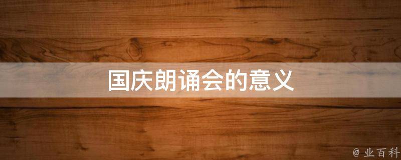 1、传承和弘扬爱国主义精神:国庆朗诵会以国庆节为契机,通过朗诵爱国诗歌和红色经典作品,传递爱国主义精神,弘扬民族精神和国家意识。