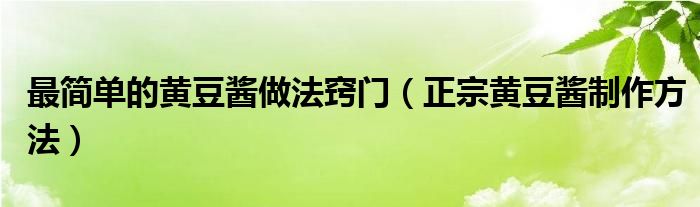 最简单的黄豆酱做法窍门(正宗黄豆酱制作方法)