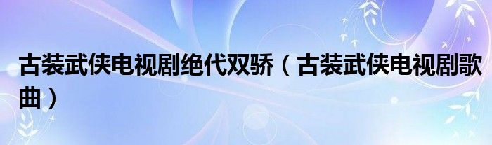 大家好,小联来为大家解答以上的问题。古装武侠电视剧绝代双骄,古装武侠电视剧歌曲这个很多人还不知道,现在让我们一起来看看吧!
