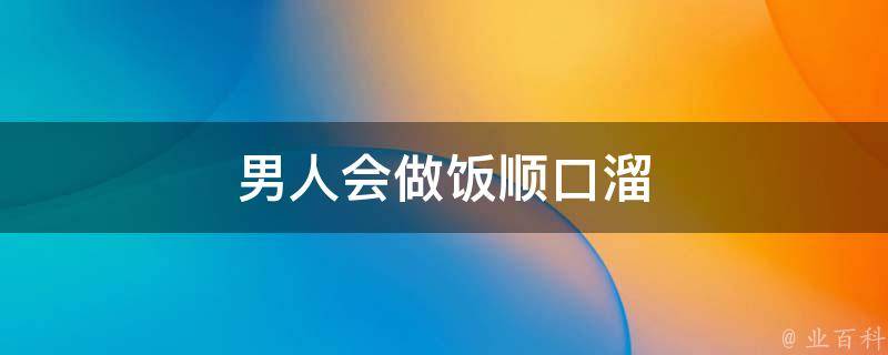 4、男人厨艺精,女人不花心。