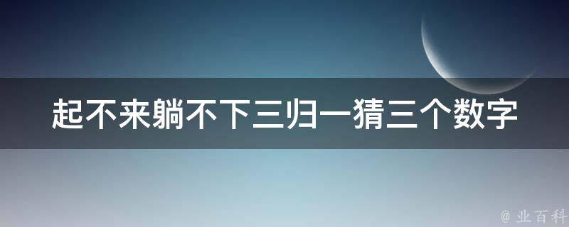 最佳答案起不来躺不下三归一是指数字204。起不来是数字2,2就象跪着低头的一个人;躺不下是数字0,0躺下或立着都是一样;三归一就是三加到一里面,就是数字4。数字是一种用来表示数的书写符号。不同的记数系统可以使用相同的数字。