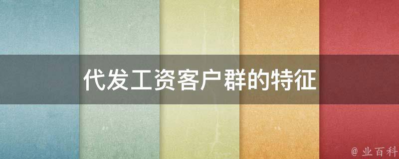 1、稳定的收入来源:代发工资客户通常有稳定的收入来源,如企事业单位员工、公务员、教师、医生等。他们的工作稳定,收入可观,有规律的工资发放周期。