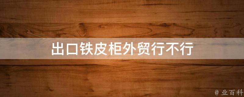 出口铁皮柜外贸是可行的。铁皮柜因其质量轻便、可塑性强、易于安装等优势,在国外市场有很大的需求量。同时随着互联网的普及和全球化进程的加速,铁皮柜外贸市场不断扩大,市场需求逐步增加。