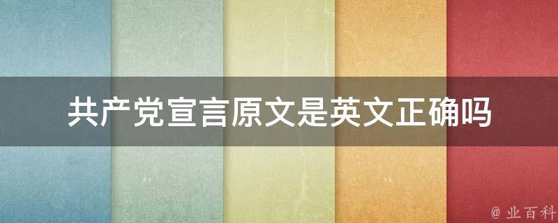 共产党宣言原文是英文不正确,《共产党宣言》原文是德文。《共产党宣言》是卡尔-马克思和弗里德里希-恩格斯为共产主义者同盟起草的纲领;首次于1848年2月21日在伦敦以单行本问世;1848年2月24日《共产党宣言》正式出版。