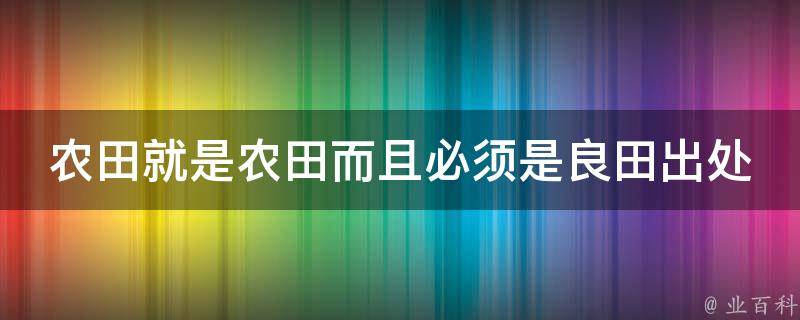 农田就是农田而且必须是良田出处