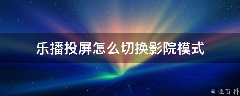 乐播投屏怎么切换影院模式