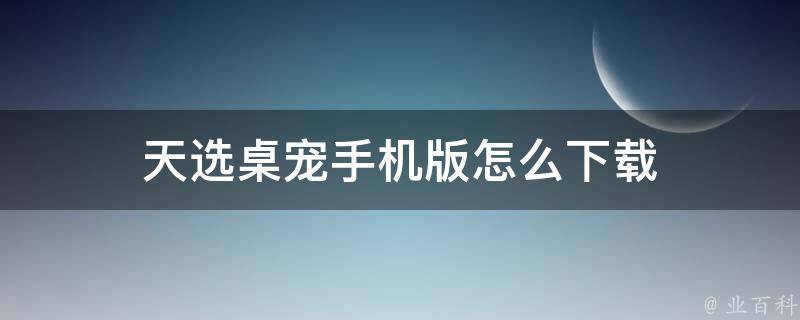 天选桌宠是一款手机游戏,可以在各大游戏平台上搜索并下载。具体可以在手机的应用商店或游戏中心中搜索天选桌宠,然后选择合适的版本进行下载。如果在下载过程中遇到任何问题,可以尝试在相关游戏社区或官方网站上寻求帮助。
