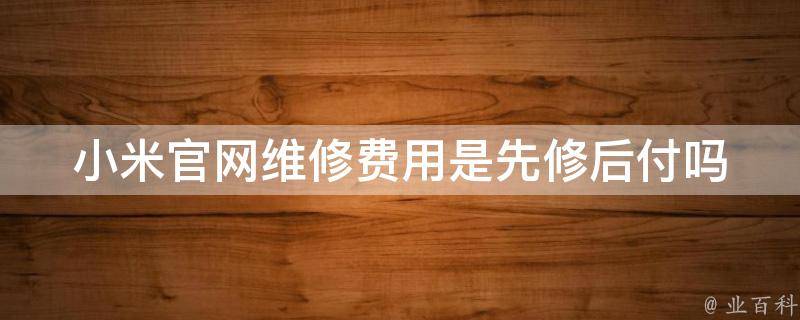 小米官网的维修费用不是先修后付。通常,在小米官网进行维修时,会需要支付相应的维修费用,然后再进行维修。具体的费用和维修流程可能会因产品类型、维修内容等因素而有所不同。如果需要了解更多关于小米官网维修费用的信息,建议直接联系小米官方客服或售后服务中心进行咨询。