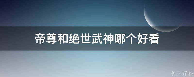 帝尊和绝世武神都是非常受欢迎的小说,具体取决于个人偏好。帝尊是一部仙侠小说,故事情节紧凑,文笔流畅,人物形象鲜明,描绘了一个仙侠世界。而绝世武神是一部武侠小说,描写了一个武侠世界中的江湖恩怨和武林风云。小说中的人物形象栩栩如生,情节跌宕起伏,充满了各种惊险刺激的战斗和冒险,非常适合喜欢武侠题材的读者阅读。