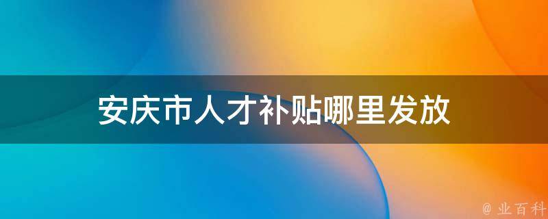 安庆市人才补贴哪里发放