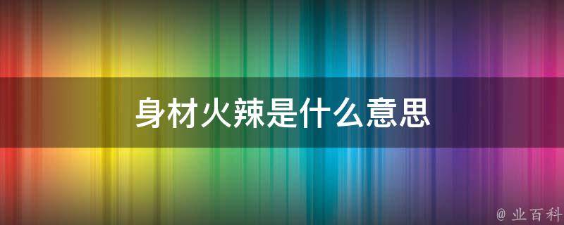最佳答案身材火辣意思是身材好、有吸引力。身材火辣用来形容女性身材性感、曲线优美、吸引人的特点,其中,火辣一词表示非常的热辣、充满活力,强调了身材的魅力和吸引力,这个词语通常用于形容体型比较好、比较性感的女性,也可以用于形容某个女性的穿着打扮或者举止言行中散发的魅力和性感。