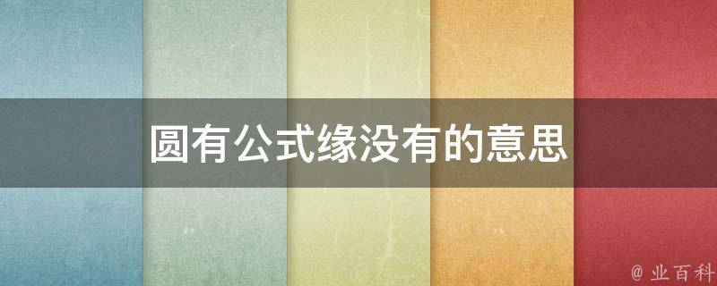 最佳答案圆有公式缘没有的意思是指数学上的圆有一套确定的数学公式,而缘分则是一种无法被量化、测量的情感体验,两者之间没有必然的联系。从情感方面来说,这个说法意味着缘分不是一种可以被预测、测量或者掌控的东西,它是一种神秘而又无法捉摸的情感体验,需要缘分的双方真诚的付出和相互理解才能成就美...