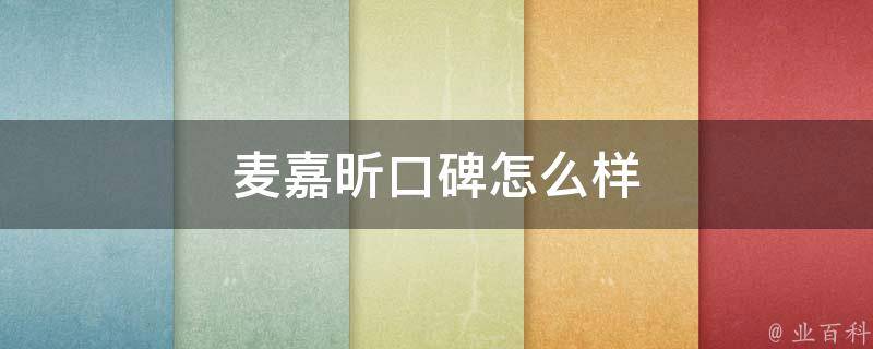 麦嘉昕口碑怎么样