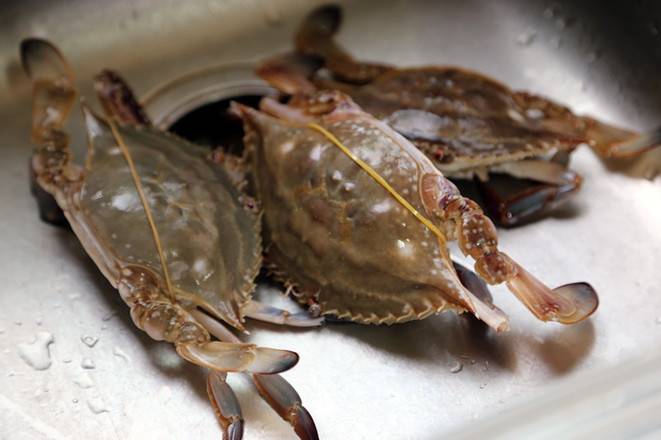 1、准备材料:梭子蟹2只、小米辣7个、生姜4克、韭黄适量、大蒜4克、生抽一勺、料酒一勺、水淀粉适量。
