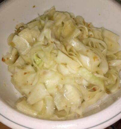 3、腌软的木瓜用温水冼去盐份沥干。
