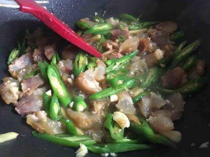 主料:牛蹄筋300克、青椒8个。辅料:大蒜5瓣、生姜20克、八角3个、桂皮1根、香叶3片、香葱2根。