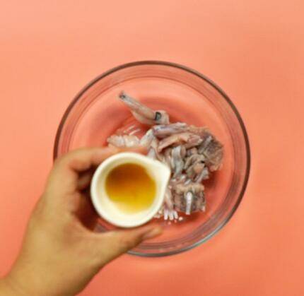 倒入牛蛙,料酒腌制10分钟。