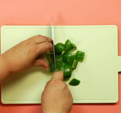 姜蒜切片,红椒,青椒切块。
