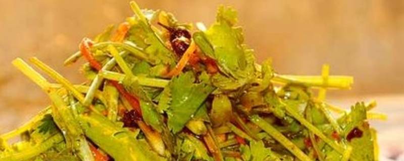 6、最后加入糖、酱油、醋调味关火晾凉,把晾凉的调味料倒入香菜中拌匀。