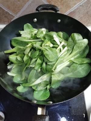 8、待油菜断生,加入适量的盐、鸡精、蚝油调味出锅即可。