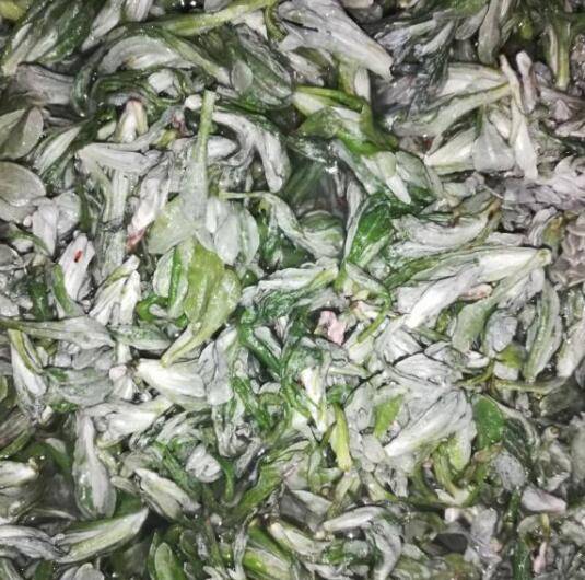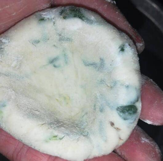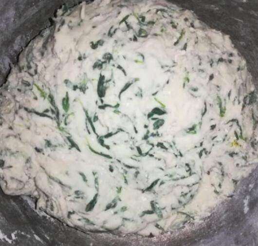 将煮好的火草盛入面粉拌匀。