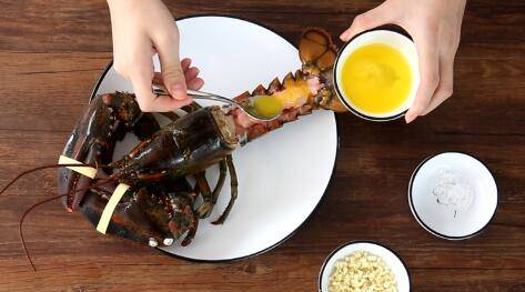 用料:波士顿龙虾1只、白洋葱半颗、蒜瓣3颗、西兰花6小颗、盐少许、黑胡椒少许、黄油适量。