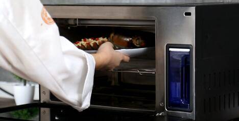 7、放入预热好的蒸汽烤箱中,选择高温蒸烤模式,中层120度10分钟左右。