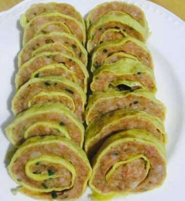 9、蒸好的蛋包圆放凉后切片装盘即可。
