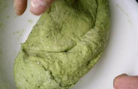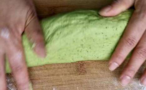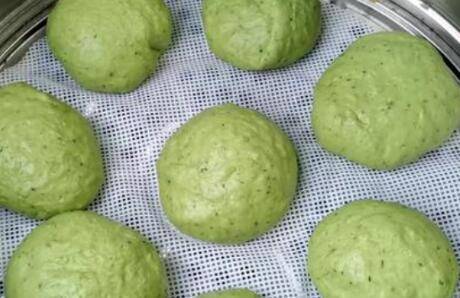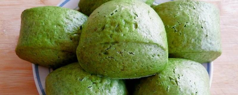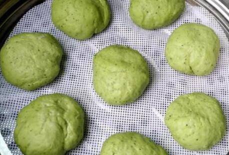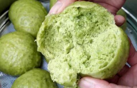 菠菜汁和面时加入少许食用碱,蒸出来的馒头就不会变色。用料:500克面粉、菠菜一把、5克酵母粉、50克白糖、1克的食用碱。