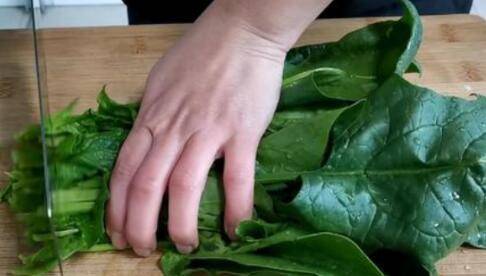 1、菠菜洗净切小段,起锅烧开水,焯水一分钟捞出。